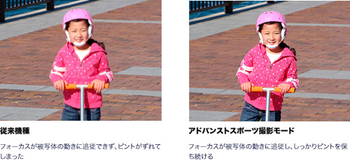 前後に動く被写体も高精度にフォーカシング。動きの速い被写体も逃さない、アドバンストスポーツ撮影モード
