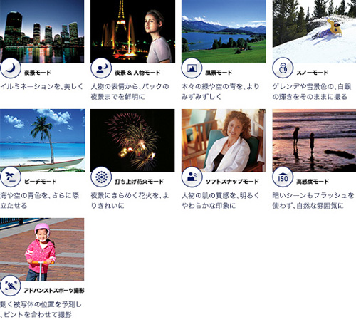モードを選ぶだけで、最適な設定に調整。シーンに合わせてキレイに撮れる、シーンセレクション