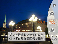 人物の顔をすばやく見つけて、美肌に仕上げる顔検出機能「顔キメ」。一度見つけた顔はしっかりと追尾し、ピントや明るさ、顔の色までキレイに調整。一瞬の表情も逃さず、人物写真をより美しく残せます。