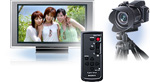 シャッター、ズームなど、撮影時に必要な機能をまとめた「リモコン」を付属。三脚を使った記念撮影など、カメラから離れての撮影も手軽にできます。また、写真をハイビジョンテレビで再生するときも、リモコンを使って簡単に操作できます。