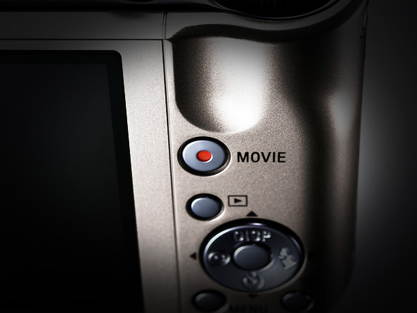 グリップ部分のMOVIE(動画)ボタンを押すだけで、すぐに動画撮影が始められます。撮影モードの切り換えは、モードダイヤルからも可能。静止画から動画への撮影切り換えがスムーズに行えます。フォーマットはAVCHDのほか、MP4での撮影も可能です。