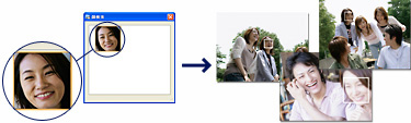 取りこんだ写真の中から、顔の写真を検索できます。さらに、検索した顔の画像から1枚選んで、似た顔の画像を絞りこむことも可能。過去に撮った写真や他社のデジタルスチルカメラで撮った写真にも対応します。
