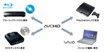 AVCHDフォーマットの採用により、撮影した映像をさまざまな方法で再生、保存、編集できます。別売のDVDライターに、動画を記録した“メモリースティック”またはSDメモリーカードとDVDを挿入すれば、パソコンなしでハイビジョン画質のDVDが簡単に作成できます。さらに、撮影した動画はテレビやパソコンはもちろん、PlayStation(R)3やブルーレイディスクレコーダーでの再生も可能。動画編集も、付属ソフト「PMB(Picture Motion Browser)」はもとより、VAIO Movie Storyなどのソニーオリジナルソフトや、Adobe社製ソフトなど、数多くのソフトに対応しています。