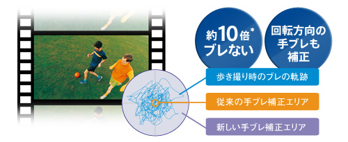 動画撮影中の手ブレを約10倍(*)補正するアクティブモードがさらに進化。回転方向の手ブレも補正し、小走りや片手持ちの不安定な撮影方法でもブレを抑えた見やすい映像を撮影できます。