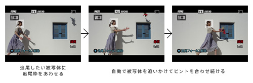 狙った被写体にピントを合わせ続ける「追尾フォーカス」も動画撮影に対応。動きのある被写体でも、しっかりピントの合った撮影ができます。