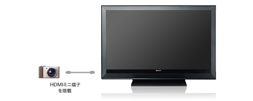 HDMI出力ができるので、ハイビジョンテレビでの写真鑑賞をいっそう手軽に楽しめます。HDMIケーブル(別売)一本で、カメラとハイビジョンテレビを接続するだけで、動画をフルハイビジョン画質(*)で再生できます。もちろん、撮影した写真もハイビジョンテレビで楽しめます。