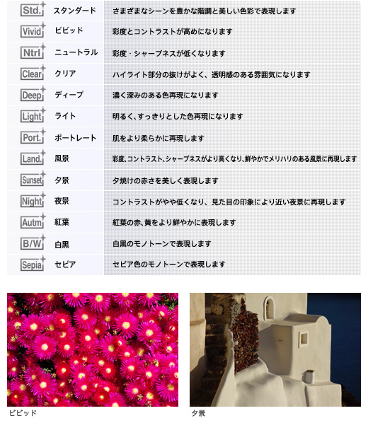 撮影シーンに合わせてモードを選ぶだけで、そのシーンに最適なカメラ設定で撮影できる「シーンセレクション」。モードは全9種類の中から選べます。
