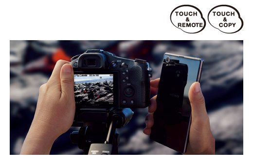 スマートフォンとの連携を高めるWi-Fi(R)通信機能に加え、NFC通信機能も搭載。NFCに対応したAndroid(TM)搭載のスマートフォンやタブレットに、専用アプリPlayMemories Mobileをインストールすれば、複雑な接続設定や操作をすることなく、DSC-RX10からワンタッチで静止画や動画(*)を転送でき、SNSなどにアップロードして家族や友人とすばやく手軽に共有できます。また、スマートフォンやタブレットからDSC-RX10のシャッターが切れる「スマートリモコン」時も、スマートフォンまたはタブレットとDSC-RX10をワンタッチでワイヤレス接続できます。