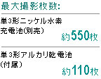 約550枚(*1)まで撮れる充実のスタミナ。また、旅先などでも手に入れやすい単3形アルカリ乾電池(*2)も使えるので、思い出をたっぷりと残せます。