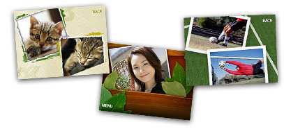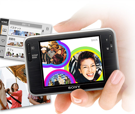 内蔵メモリーにためた写真を、ボタンひとつで手作り感あふれる「スクラップブック」に。カメラの背面にある「スクラップブック」ボタンを押すだけで、まるでアルバムのように写真を演出できます。背景は16種類の中から、好きなものを選べます。