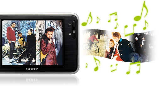 T2でいつでも写真を持ち歩くなら、写真を見せるだけでなく音楽をつけて演出してみよう。好きな音楽といっしょに写真をスライドショー再生できる「音フォト」なら、思い出がさらに感動的に。まるで映像作品を見るように、そのときの時間が、よみがえります。また、曲を手持ちのCDやMP3にも入れ換え可能。「音フォト」をもっと楽しめます。