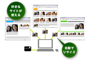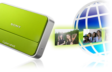 付属の画像管理ソフト「Picture Motion Browser」にブログやSNS、フォトシェアリングサービスなど、いつも使っているネットワークサービスを登録可能。アップロードしたいサイトを選ぶだけですぐにアクセスでき、同時に、指定した画像サイズに自動でリサイズできます。
