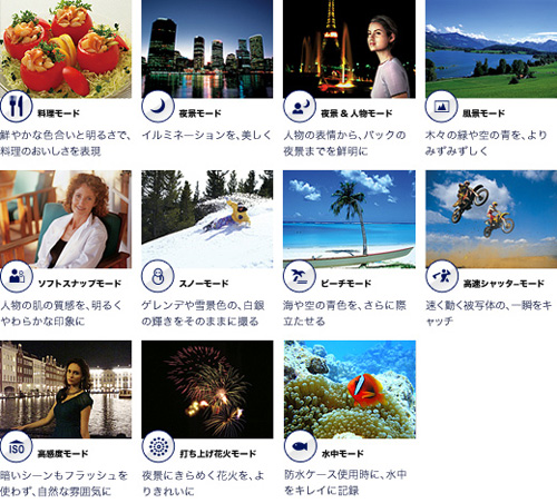 撮影シーンに応じたモードを選ぶだけで、カメラが適切なバランスに設定を調整するシーンセレクションに「料理モード」をプラス。グルメ雑誌のような、明るくおいしそうな写真が手軽に撮影できます。