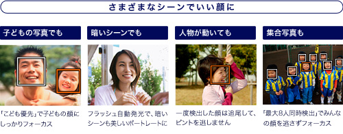 「顔動き検出」を搭載しているので、被写体となる人物の動きを検出し、ブレを抑えて撮影できます。