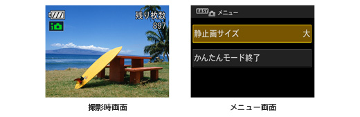 「かんたん撮影モード」を選べば、設定するのは「画像サイズ」「フラッシュ」「セルフタイマー」だけになり、わかりやすく操作できます。設定はシンプルでも、「おまかせシーン認識」や顔検出機能などがしっかりと働いているので、キレイに撮影できます。