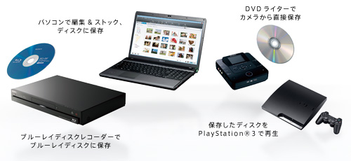 AVCHD方式の採用により、撮影した映像をさまざまな方法で再生、保存、編集できます。