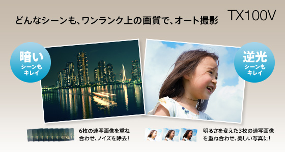 ソニー独自の「重ね合わせ処理」技術により、連写時に手ブレしても、被写体が動いても、自然な重ね合わせが可能です。