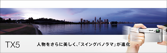 カメラを一定方向に振るだけで、最大258度の壮大なパノラマ写真を撮影可能。カメラをひとふりする間に、手ブレ補正を行いながら最大100枚の静止画を高速連写。その連写画像の各画像間のズレを検出し、高精度につなぎ合わせることでパノラマ画角を実現しました。これからは、カメラを振るだけの手軽さで、目の前の風景をまるごと1枚のパノラマ写真に収められます。