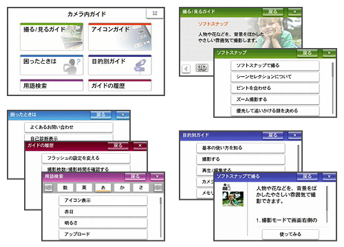 操作がわからないときや、撮影モードの使い方でアドバイスがほしいときに役立つ「カメラ内ガイド」を搭載。各機能の使い方や、その撮影方法まで解説してくれるので、外出先で操作がわかりづらい時でも、その場で解決できます。