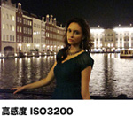 高感度ISO3200の高い受光感度を生かし、夜景や暗い室内の撮影でもフラッシュを発光せずに、背景の様子やシーンの雰囲気まで残せます。さらに、高感度で発生するノイズは「クリアRAW NR」で低減。また、高感度による高速シャッターで、被写体が動く「被写体ブレ」も防げます。