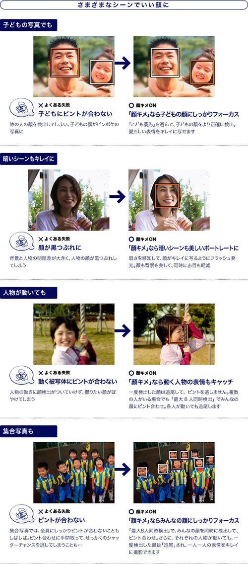 優先したい人物の顔を登録すれば、常にその人物を優先して、フォーカスや露出、ホワイトバランスを調整します。登録した人物の顔がフレームアウトしても記憶しているので、撮りたい人物が決まっている運動会や結婚式などに便利です。