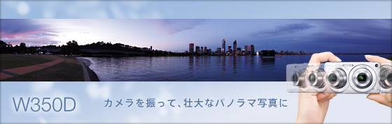 カメラを一定方向に振るだけで、最大268度の壮大なパノラマ写真を撮影可能。カメラをひとふりする間に、手ブレ補正を行いながら最大100枚の静止画を高速連写。その連写画像の各画像間のズレを検出し、高精度につなぎ合わせることでパノラマ画角を実現しました。これからは、カメラを振るだけの手軽さで、目の前の風景をまるごと1枚のパノラマ写真に収められます。