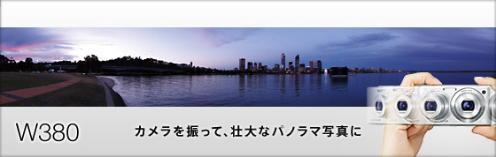 カメラを一定方向に振るだけで、最大260度の壮大なパノラマ写真を撮影可能。カメラをひとふりする間に、手ブレ補正を行いながら最大100枚の静止画を高速連写。その連写画像の各画像間のズレを検出し、高精度につなぎ合わせることでパノラマ画角を実現しました。これにより、カメラをスイングするだけの簡単な操作で、高画質なパノラマ写真を手軽に撮影できます。