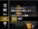 「おまかせオート撮影」、「動画撮影」、「シーンセレクション」など、使用頻度が高い撮影モードがまとめられた「モードダイヤル」を搭載。ダイヤルを回すだけで、各モードがすばやく選べます。さらに、モードダイヤルに連動して、各モードの説明が液晶画面に表示されるので、迷わず選べます。