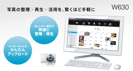カレンダー表示で撮った映像をかんたんに整理・検索・再生が行えます。サイバーショットとパソコンをつなぐだけで、カメラ内の映像を取りこまなくても見ることができます。パソコンに取りこんでDVDを作成したり、その他の便利な機能を使ったり、楽しくかんたんに管理、活用できます。