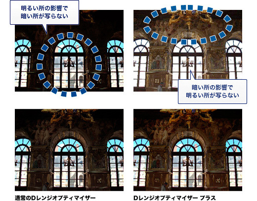 逆光シーンでも明るく、見たままの自然な写真に。「Dレンジオプティマイザー」