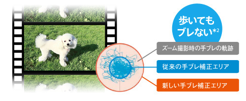 動画撮影時のブレを抑える「光学式手ブレ補正(アクティブモード)」(*1)を搭載。これまでの光学式に加え、電子式の手ブレ補正の併用により、ズーム時の手ブレ補正性能がさらにアップしました。歩きながらの撮影はもちろん、ブレやすいズーム撮影時も、ブレを抑えて鮮明な映像を残せます。