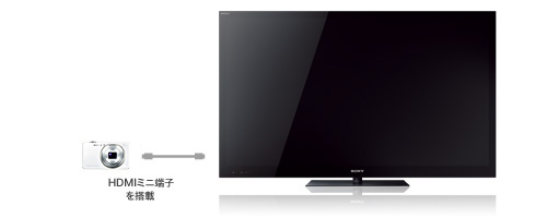HDMI出力ができるので、ハイビジョンテレビでの写真鑑賞をいっそう手軽に楽しめます。HDMIケーブル(別売)一本で、カメラとハイビジョンテレビを接続するだけで、動画をフルハイビジョン画質(*)で再生できます。もちろん、撮影した写真もハイビジョンテレビで楽しめます。