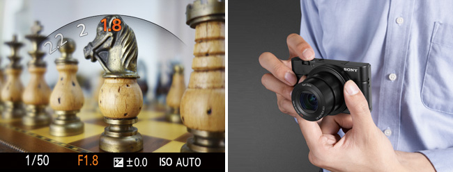 大きなイメージセンサーと、大口径の高性能レンズを小型ボディに凝縮することで、ポケットにもすっと入るほどのコンパクトさを実現しました。