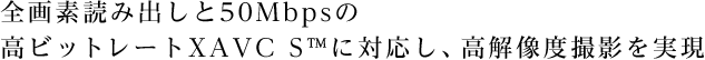 プロ用に開発されたXAVCを民生用に拡張したXAVC S*1 に対応。圧縮ノイズを抑えて動く被写体も美しく撮影できます。イメージセンサー全画素の情報を高速で読み出し、BIONZ Xで高速処理を行うため、なめらかで高精細な動画記録を実現しています。また、120pハイフレームレート記録*2や、MP4の同時記録*3にも対応しました。