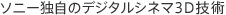ソニーは、プロフェッショナルからご家庭まで幅広い3D技術で業界をリードしてきました。映画館で楽しむことのできる3Dコンテンツは映画作品のみならず、スポーツ、音楽、演劇など多様な可能性を秘めております。ソニーは3Dにおける豊富なノウハウと最新の技術開発で、映画館における3Dエンタテインメント体験の進化に貢献して参ります。