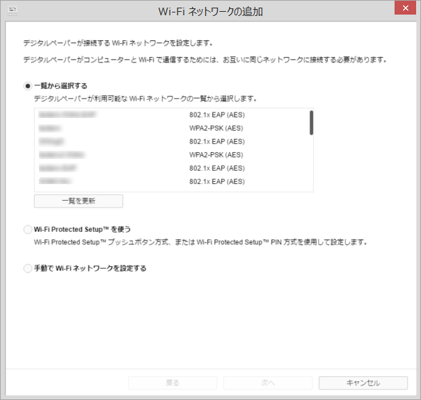 デジタルペーパーが接続可能なアクセスポイントの一覧から選択します。