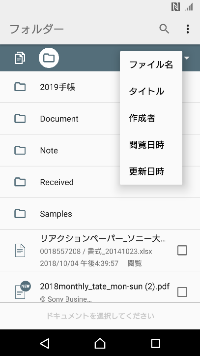 ※上記のソート機能は、接続しているデジタルペーパーの表示を操作する機能ではありません。