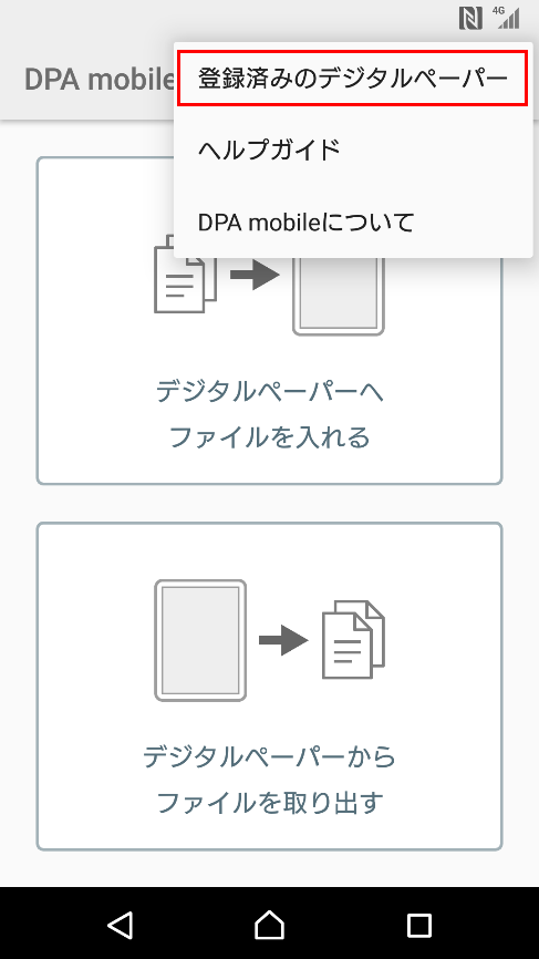 「DPA mobile」を起動し、「デジタルペーパーへファイルを入れる」を選択