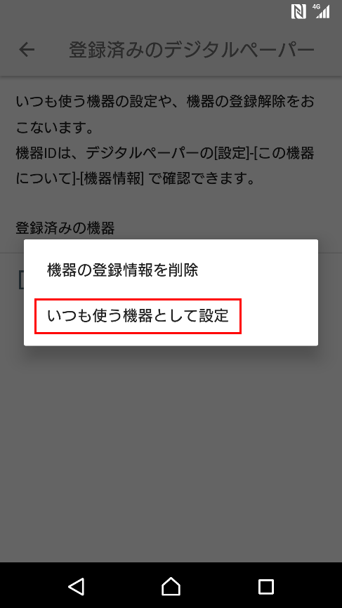 いつも使う機器として登録したデジタルペーパーの設定を削除するには、「登録済みのデジタルペーパー」から、「いつも使う機器の設定を解除」を選択してください。