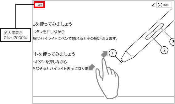 - 拡大率が0%〜2000%の間でピンチ操作による拡大 / 縮小ができます。