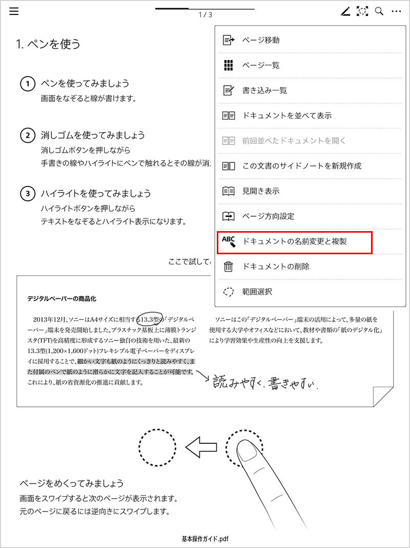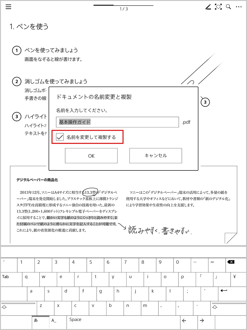 デジタルペーパー内でドキュメントの複製ができるようになりました。