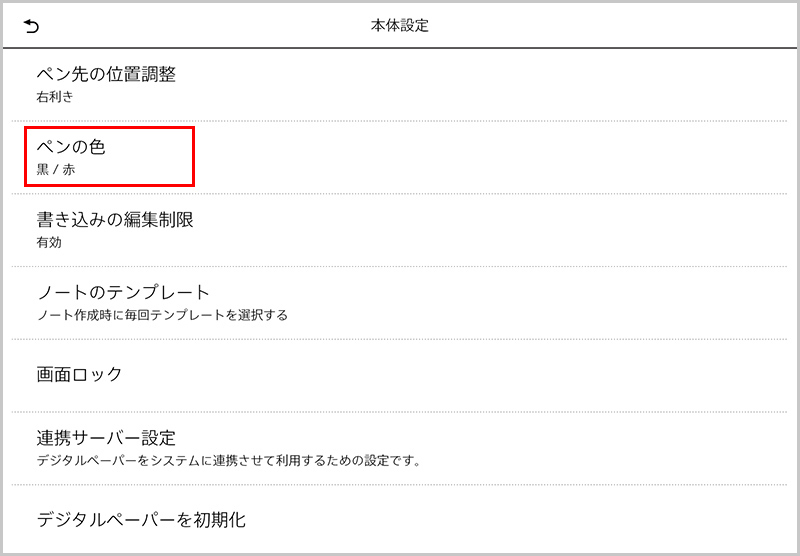 - 「ペンの色」をタップ