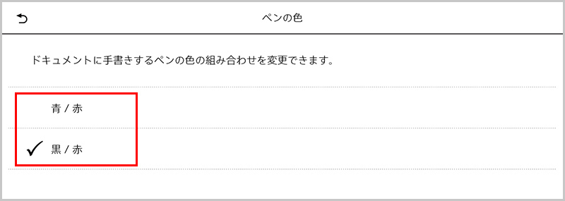 ペンの色を選択するメニューに表示されるペンの色の組み合わせを設定で「青・赤」か「黒・赤」を切り替えることができるようになりました。