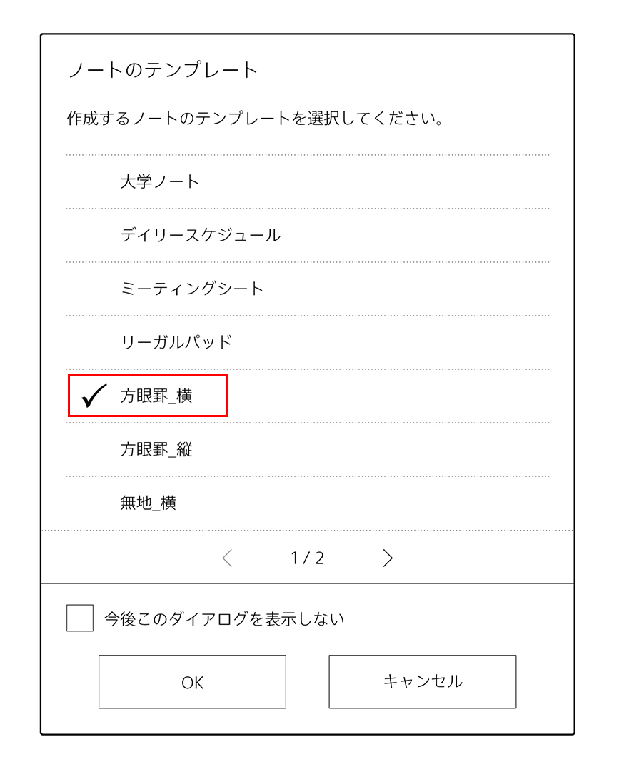 【新機能6】 ノートのテンプレートに「方眼罫_横」を追加