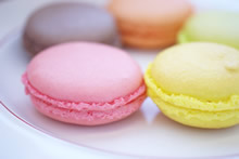 AUTOモードで全体が明るい被写体なので露出を+補正し、さらに、マカロンの色合いを出すために、ホワイトバランスブラケットで色再現の違う3枚を撮る。