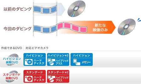 “ハンディカム”本体、または、ハンディカムステーションの「ワンタッチ ディスクボタン」をタッチ。新たに録画された内容だけを自動的にダビングできます。