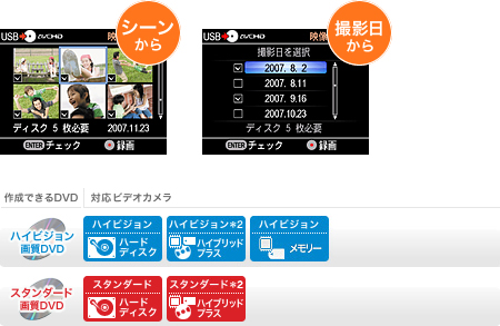 細かく分かれて記録された映像を撮影された日付ごとに、自動的にグループ化してダビングできます。すっきりと整理され、あとで見るときに便利です。