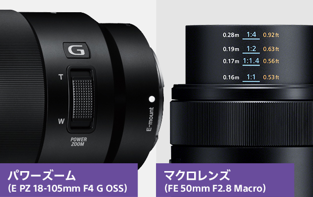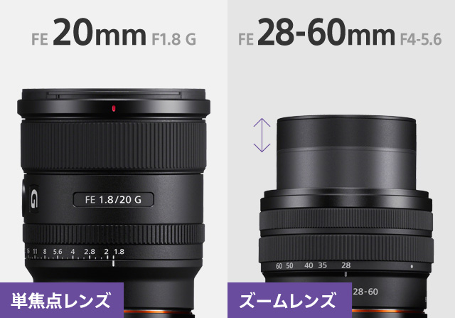 数値(mm)が2つ:ズームレンズ(広角端-望遠端の間でズーム可能)