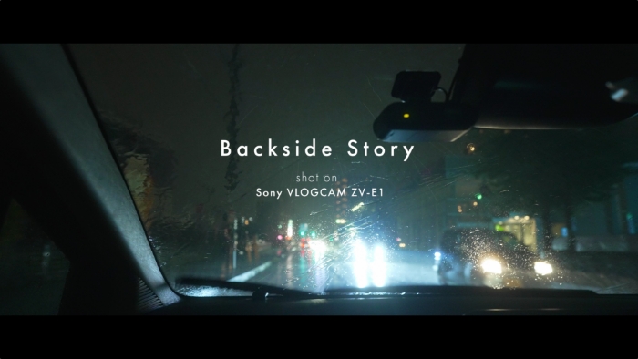 冒頭の夜の雨のシーンは、車のヘッドライトに照らされる雨粒や、ワイパーに拭われフロントガラスを流れていく雨水が情緒的で、お気に入りのシーンのひとつです。αはノイズが出にくいので、夜のシーンもきれいに撮影できます。特にVLOGCAM ZV-E1はノイズ処理に優れていて、ISO感度を3200ぐらいまで上げても、ノイズが全然気になりませんでした。ノイズのない引き締まった黒の表現で、夜の雨の美しさがさらに際立ったと思います。