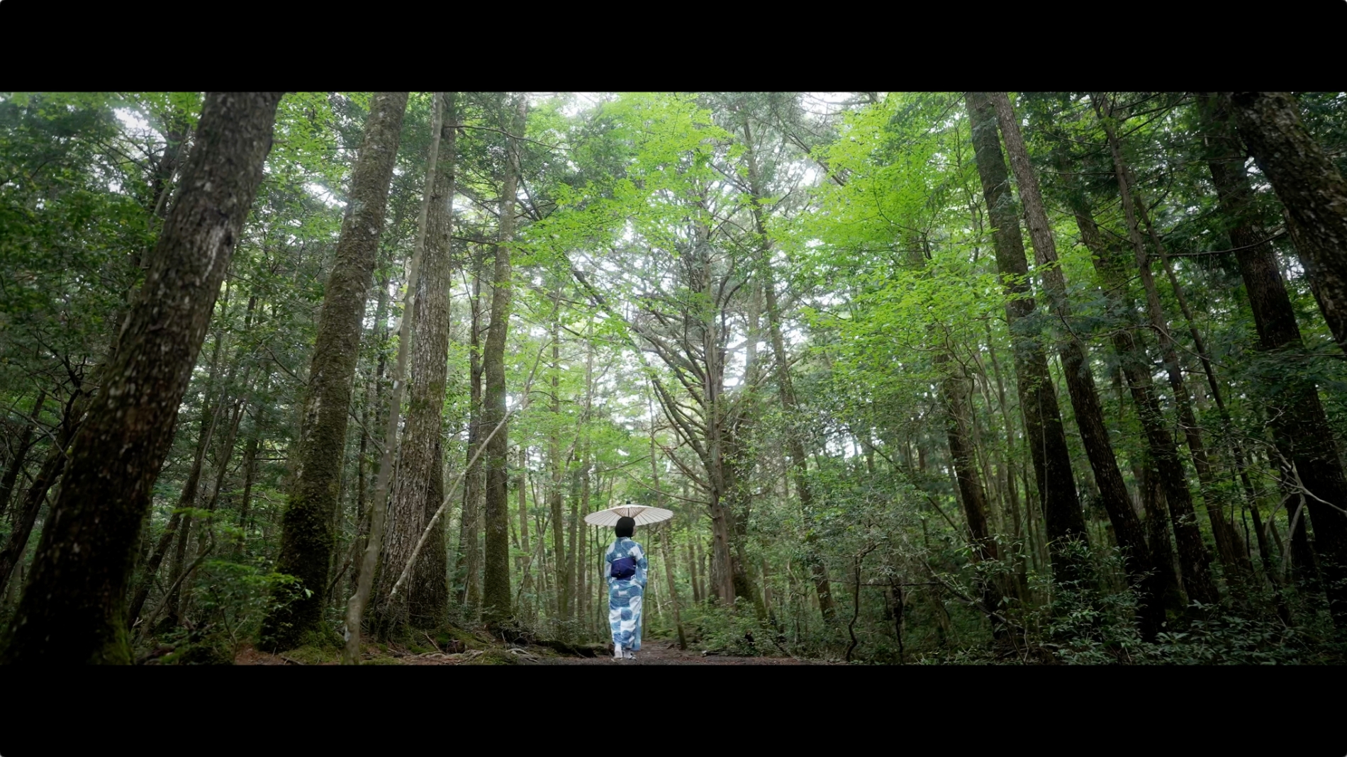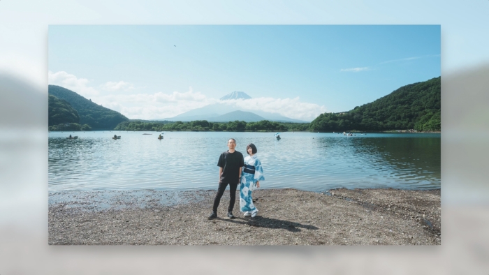 もうひとつのお気に入りは、2分12秒あたりの森のシーンから、最後の記念撮影までの流れですね。湖の場所には何度か訪れていますが、こんなにはっきりと富士山が見えたのは初めてでした。直前まで雨が降っていたおかげで、いい感じに靄(もや)がかかっていて、本当に印象的で特別なシーンになりました。